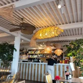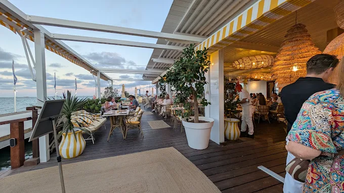 magnifique lieu, vue superbe sur le Mar Menor, plutôt moderne avec une décoration soignée, style “beach club chic”, une cuisine créative, avec une touche “fusion” et des produits fraiscoucher O soleil 🔆