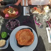 Nous nous sommes installés sur la terrasse non-fumeur. La nourriture était excellente, les deux entrées étaient délicieuses et généreuses. La tourte au steak était énorme et délicieuse.
