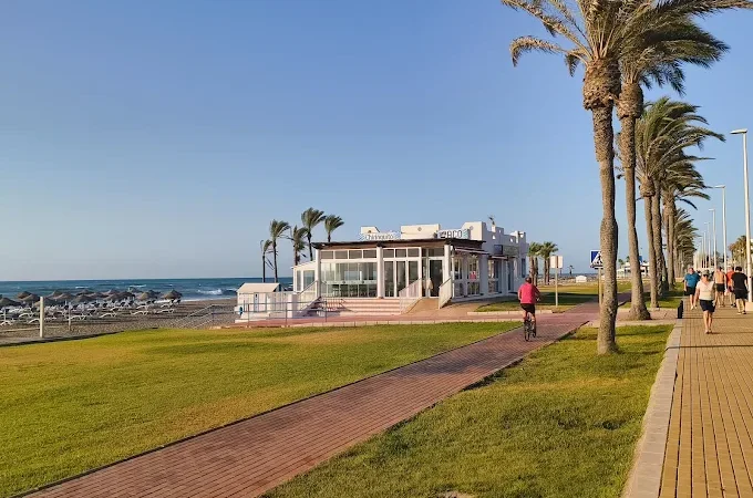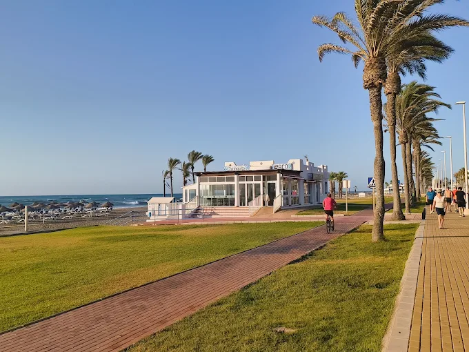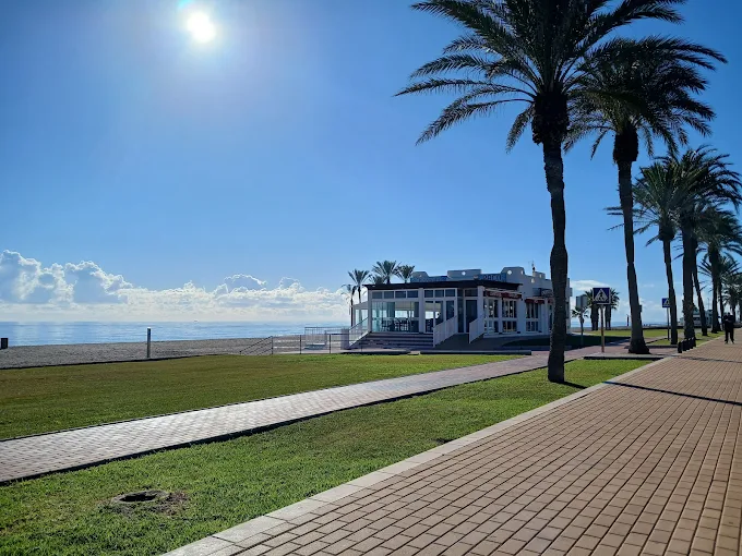 bien beau lieu, ambiance bord de mer très agréable, atmosphère vacances, détendue, typique des chiringuitos andalous, beaucoup d’espace, idéal pour les enfants, la famille…