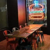 Nous sommes arrivés pour dîner 20 minutes avant la fermeture de la cuisine et le service était aimable et ultra-rapide. Nous avons commandé le Kevin Bacon et le M-30, tous deux délicieux, et les frites étaient savoureuses. Nous avons beaucoup apprécié les sauces qui accompagnaient les burgers. Les serveurs étaient vraiment très sympathiques !