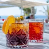 Délicieux martini fait maison avec vue spectaculaire sur la Mar Menor, calme et chic.
