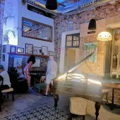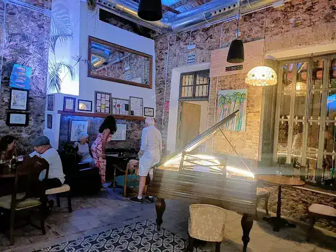 un bar unique remplis de souvenirs, les hauts de plafond vous offre une sensation de bien-être au son d’un charmant 🎹 piano, la convivialité des lieux, sa rareté de son authenticité vous ferons passer un excellent moment en terrasse ou bercé confortablement dans leurs fauteuils de cuir| également lieux d’événements, expositions… |